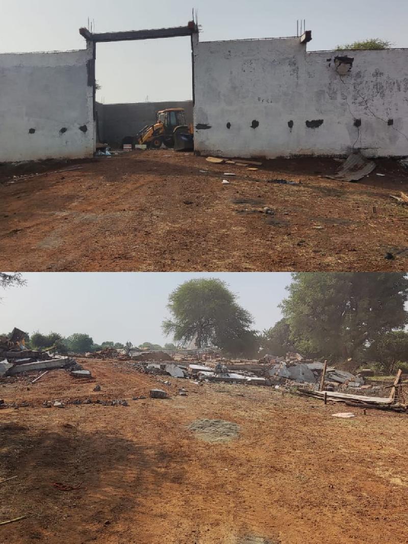 दिनांक 04.11.22 को थाना गरोठ पुलिस द्वारा मुखबिर सुचना पर आरोपी रणजीत सिँह व मदन सिँह नि0 ग्राम सपानिया के गोदाम व घर पर दबिश देकर आरोपी के घर से नकली खाघ के कुल 1228 कट्टे जप्त किये गये थे जो आरोपी रणजीत सिँह व मदन सिँह घटना दिंनाक से ही फरार चल रहै थे । जिसकी चल अचल सम्पत्ति की जानकारी प्राप्त पर फरार आरोपीयो द्वारा अवेध अतिक्रमण की गई शासकीय भुमि 3600 स्कवेयर फीट भुमि का गोदाम , 2100 स्कवेयर फीट भुमि का तालाब किनारे बना घर व 03 बीघा जमीन पर की हूई तारफेंसिग कुल अनुमानित कीमत एक करोड रुपये को तोडकर आरोपी के कब्जे से मुक्त कराई गई । |